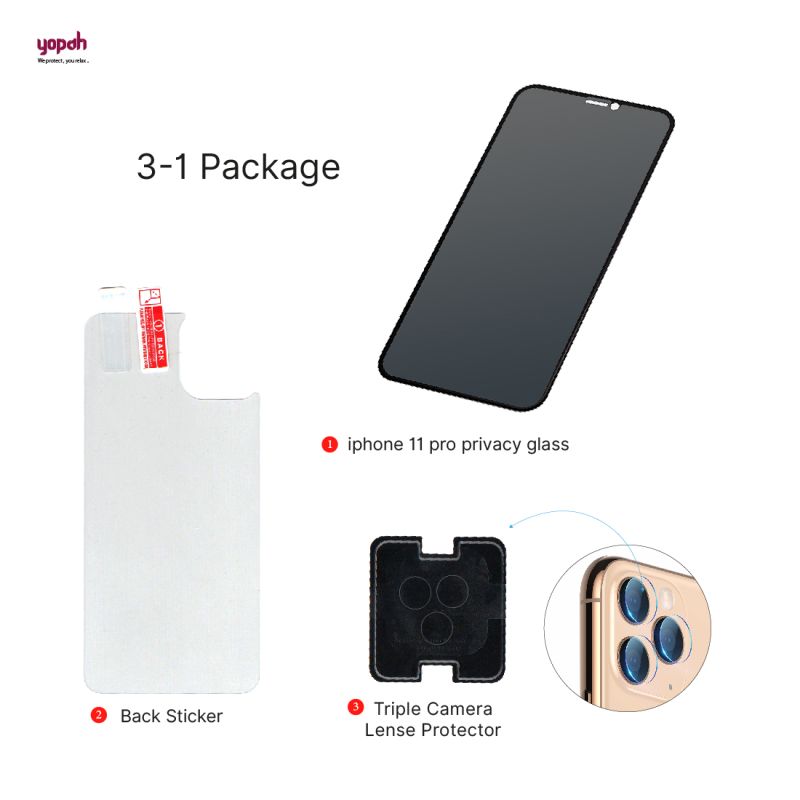 Yopah Edge To Edge Privacy Tempered Glass for Apple iPhone X, Apple iPhone XS, Apple iPhone 11 Pro (Pack of 1)