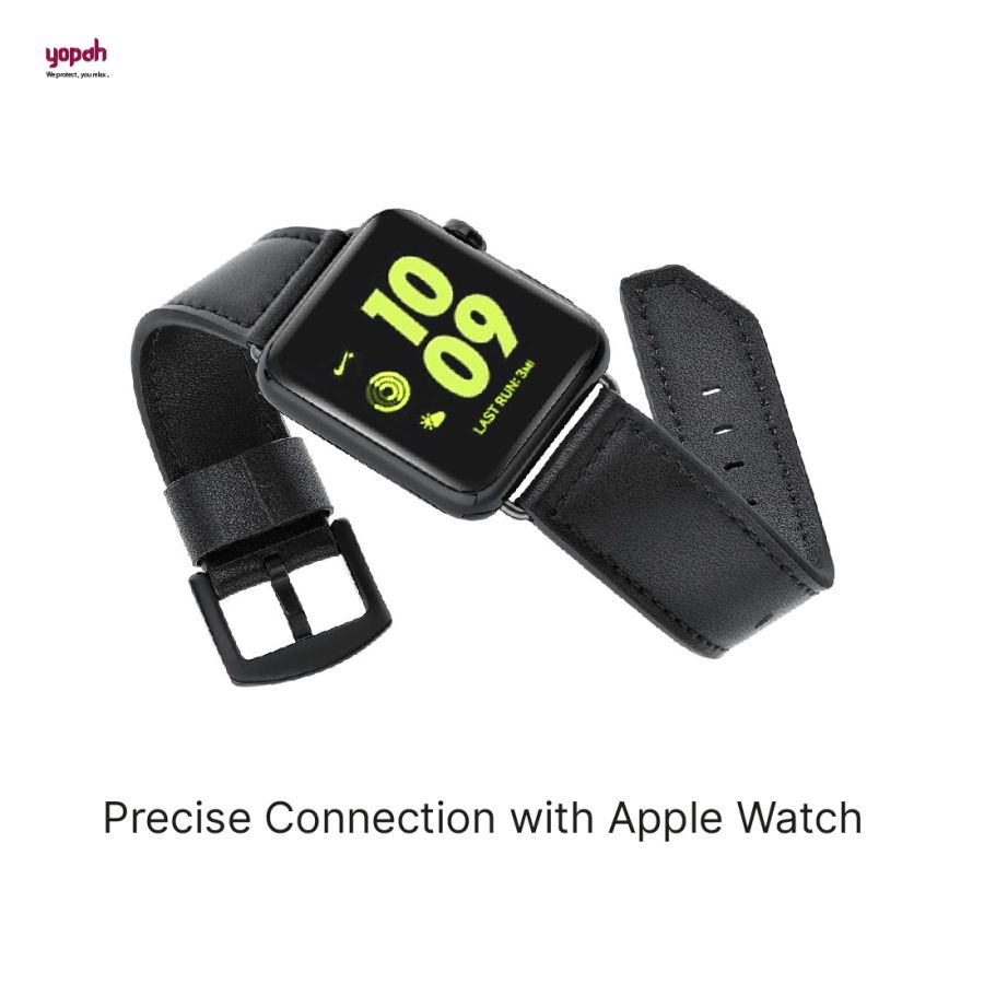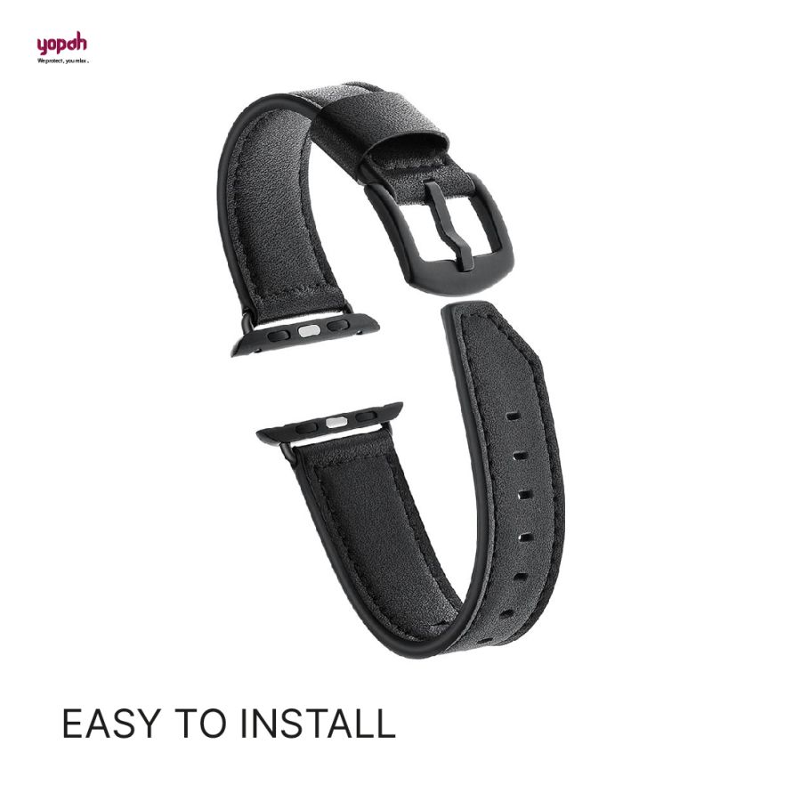 Yopah Leather strap for apple watch series 3/4/5/6 42/44 mm (Black)