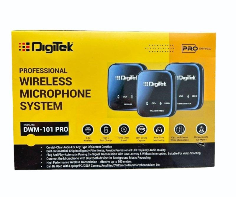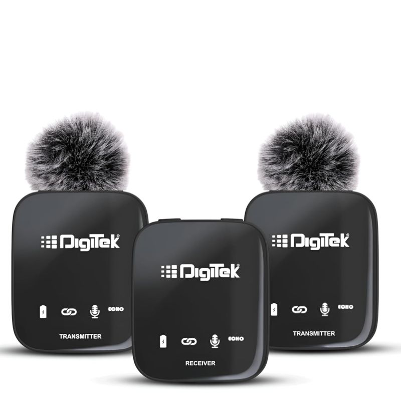 Digitek® (DWM 101 Wireless Microphone System with ANC Noise Reduction, 360° Sound Capture, 100M Range, Upto 12 Hrs Working Time, for DSLR Camera, Android & iOS Smartphones, Seamless Audio Recording