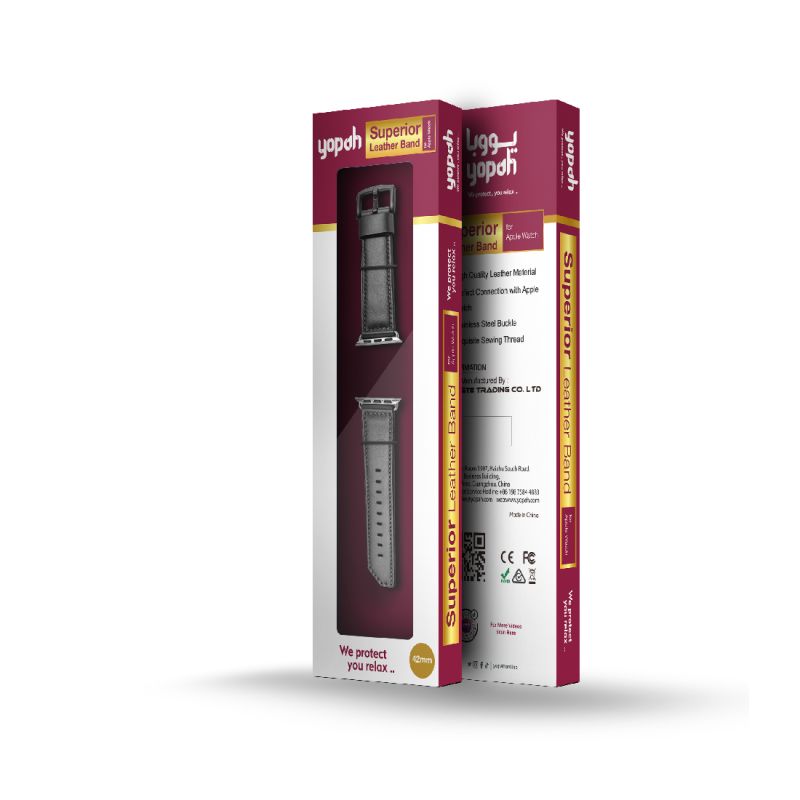 Yopah Leather strap for apple watch series 3/4/5/6 42/44 mm (Black)